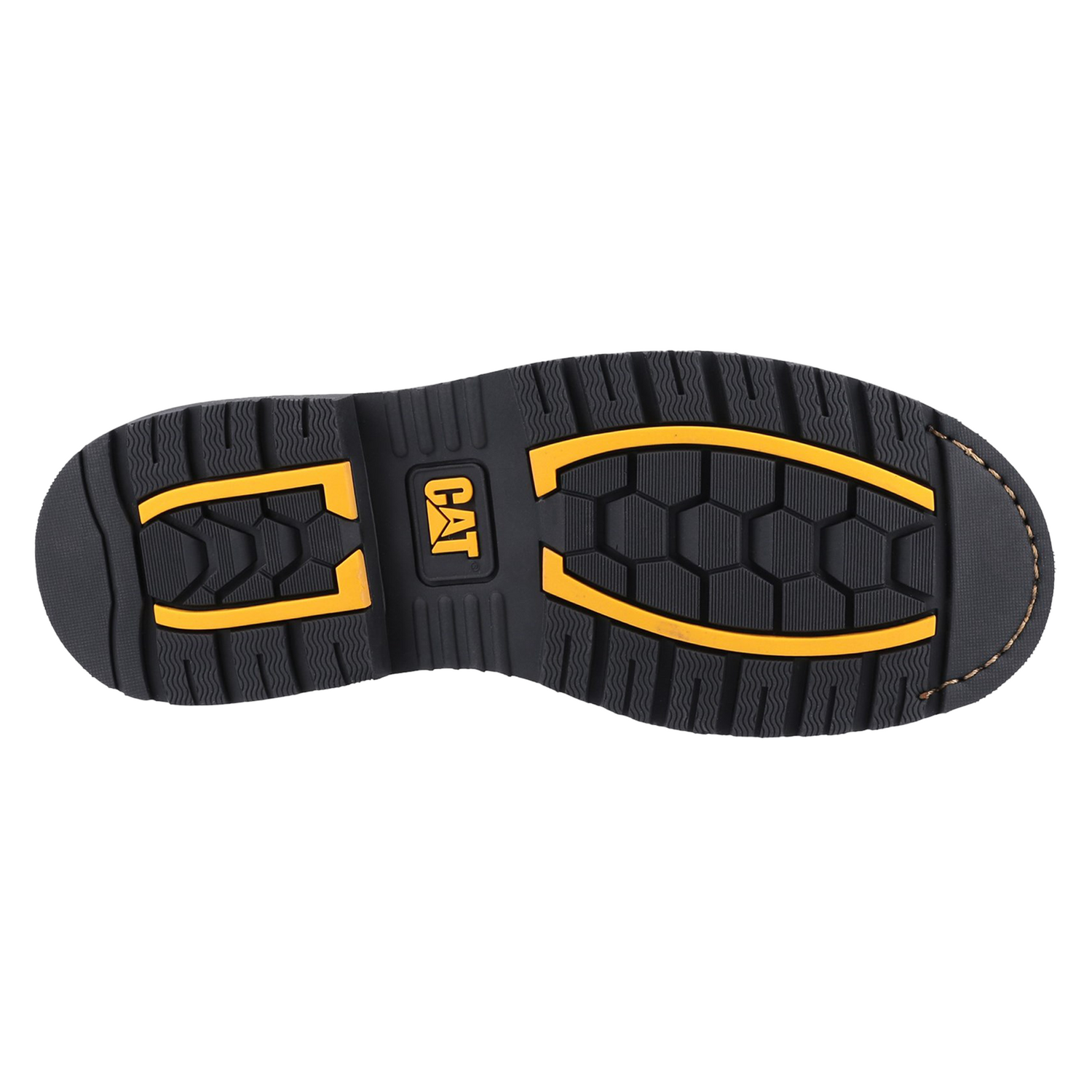 Powerplant Dealer Safety Boot from Cat features Goodyear Welted Construction and Nitrile Rubber outsole, 200 Joules Steel toe cap, removable PU footbed, padded PU collar, triple stitched seams, outsole heat resistance to 300C, energy absorbent heel.